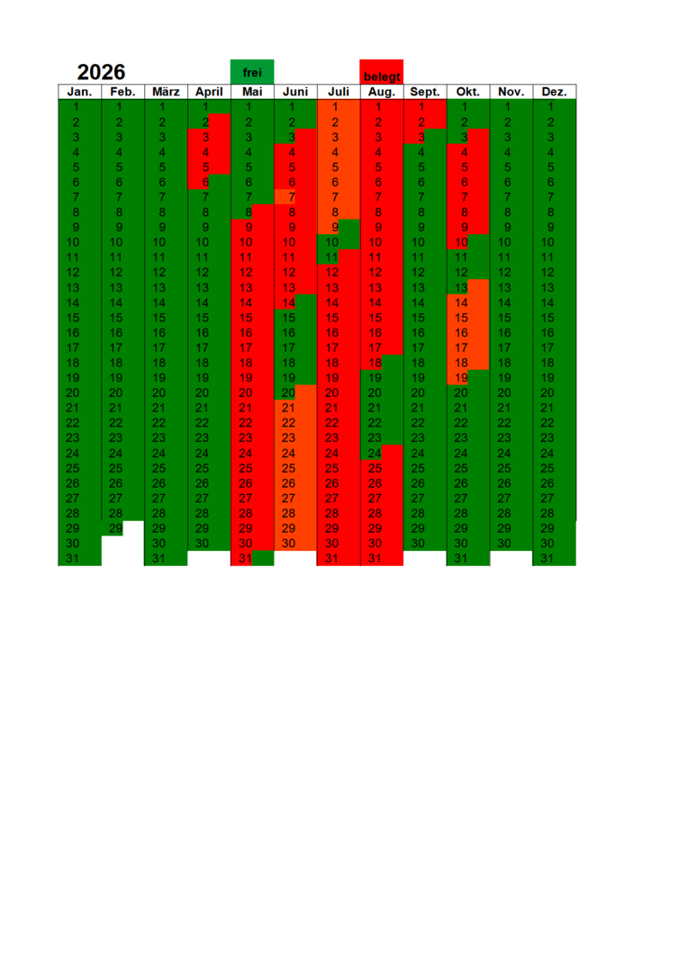 Anreise ab 14 Uhr Abreise bis 11 Uhr